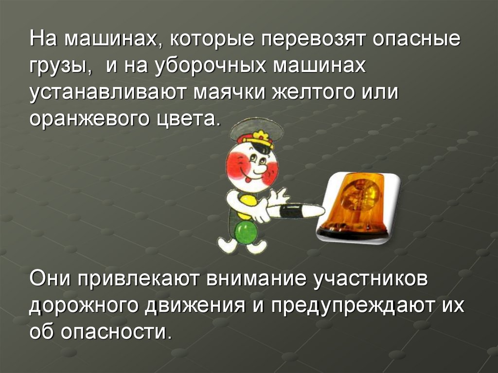 На машинах, которые перевозят опасныегрузы, и на уборочных машинах