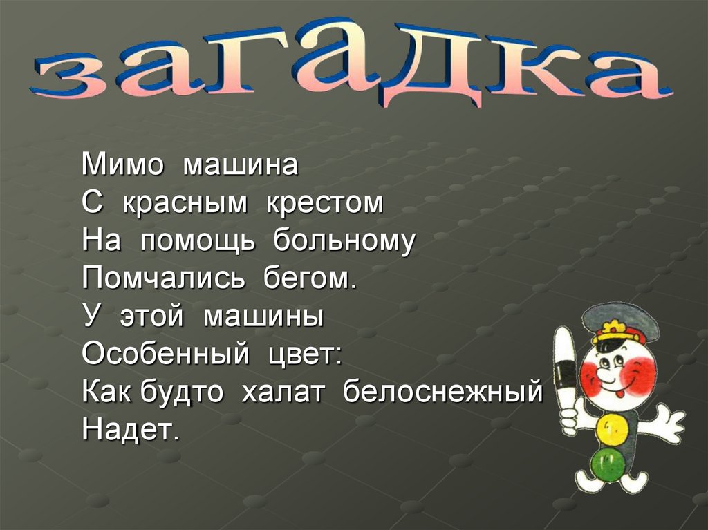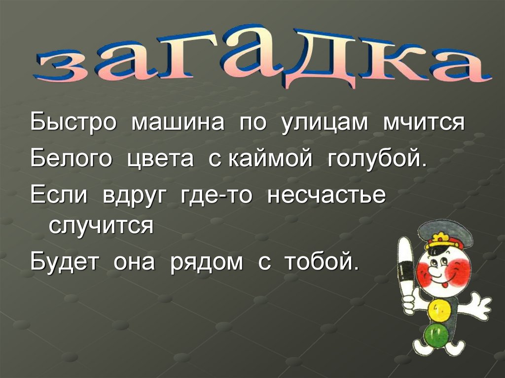 Быстро машина по улицам мчитсяБелого цвета с каймой голубой.