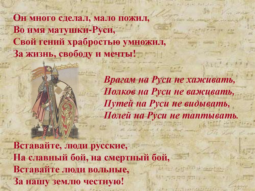 Он много сделал, мало пожил,Во имя матушки-Руси,