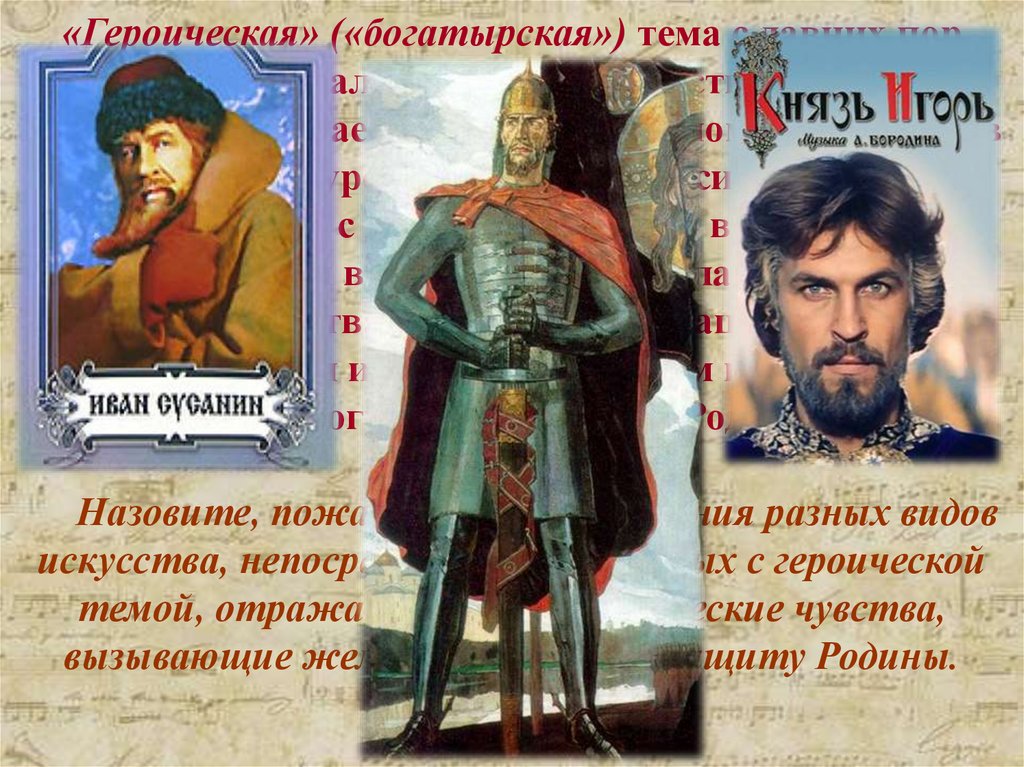 «Героическая» («богатырская») тема с давних порзвучала в русском искусстве.