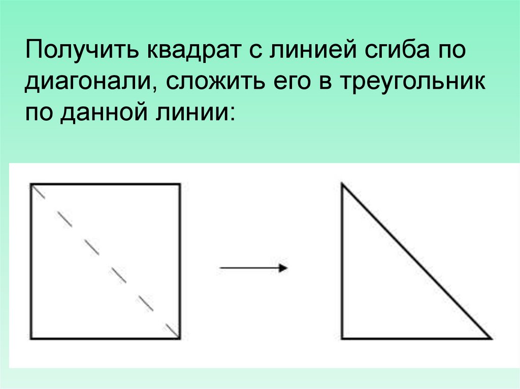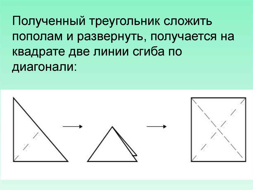 Получить квадрат с линией сгиба подиагонали, сложить его в треугольник