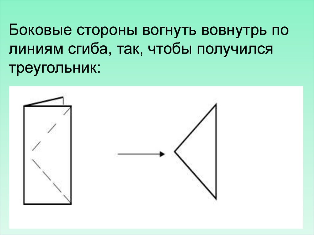 Боковые стороны вогнуть вовнутрь полиниям сгиба, так, чтобы получился