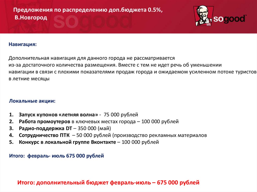 Предложения по распределению доп.бюджета 0.5%,В.Новгород