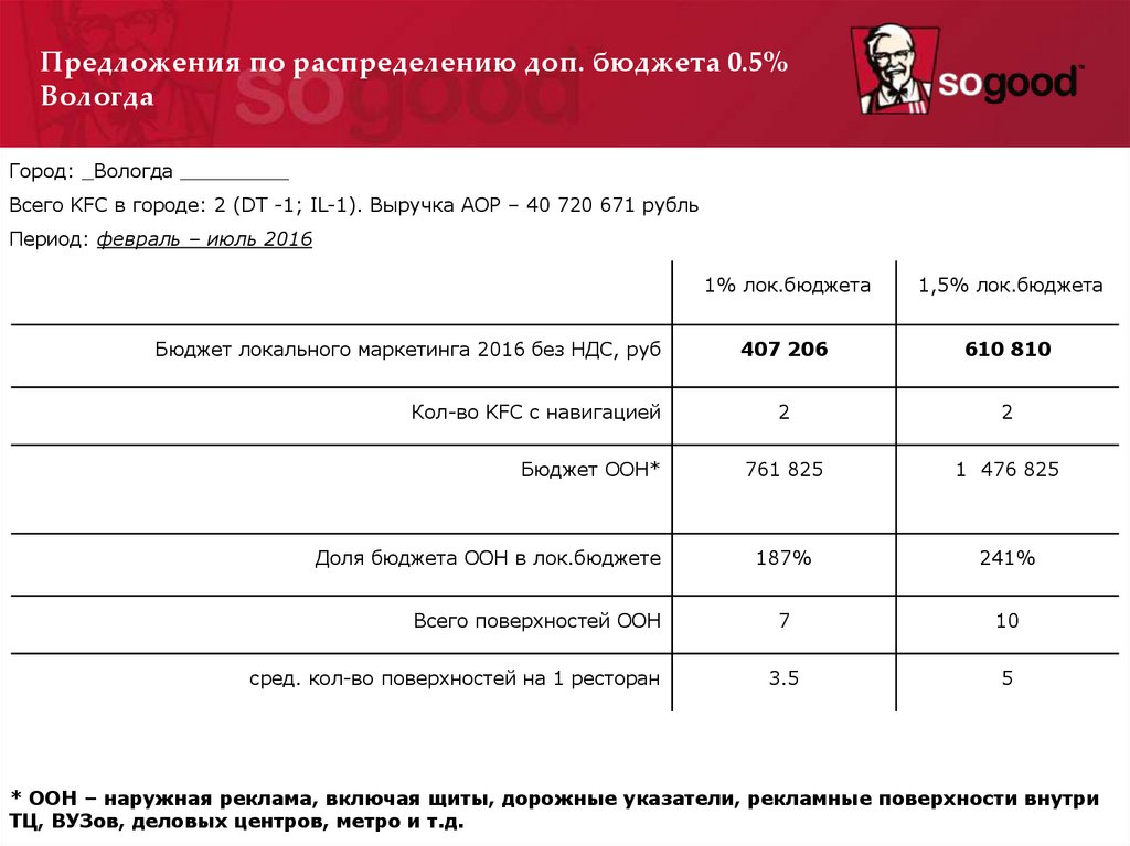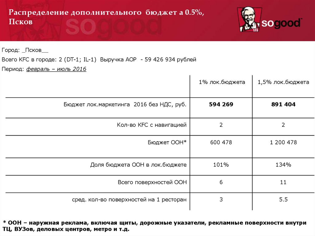 Всего KFC в городе: 2 (DT-1; IL-1) Выручка АОР – 59 426 934 рубля