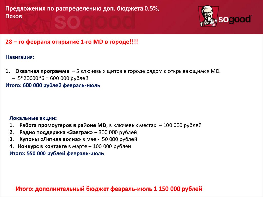 Итого: дополнительный бюджет февраль-июль 1 150 000 рублей