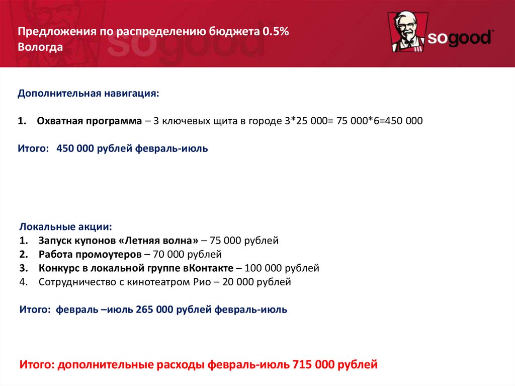 Предложения по распределению доп. бюджета 0.5%Вологда
