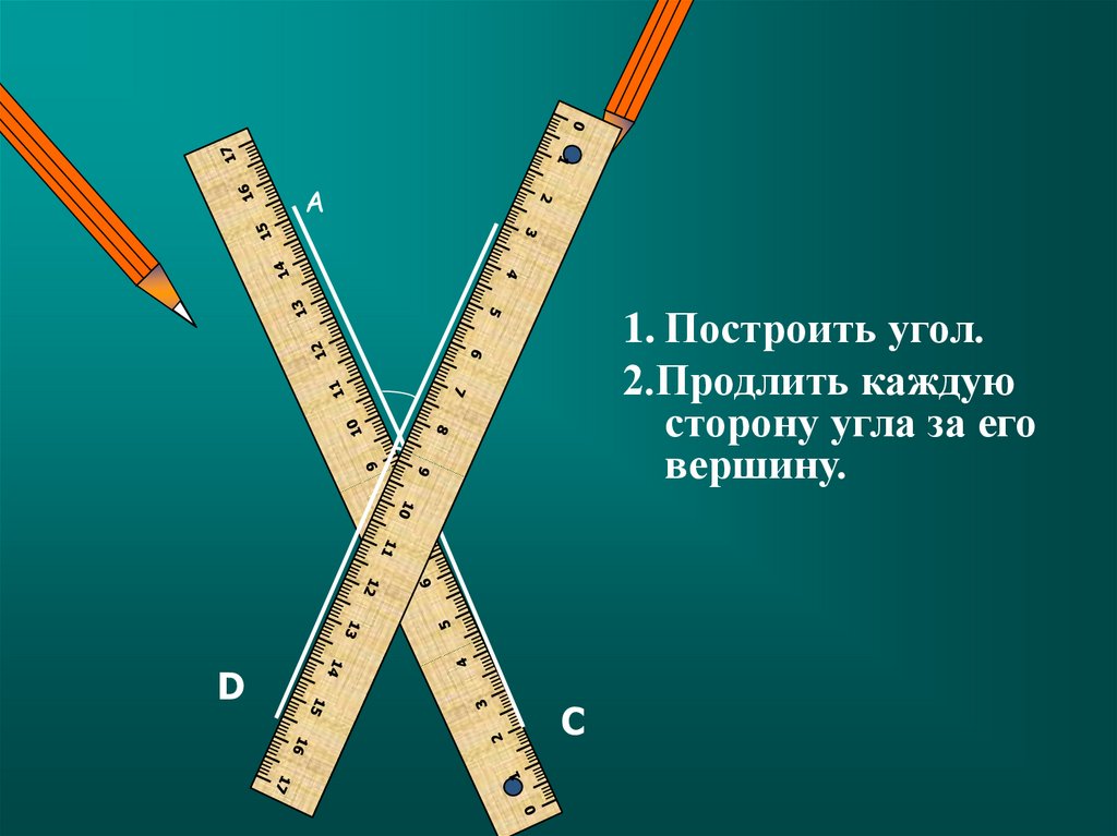4. Начертите произвольный AOB. Постройте лучи OC и OD, противоположные к его сторонам.