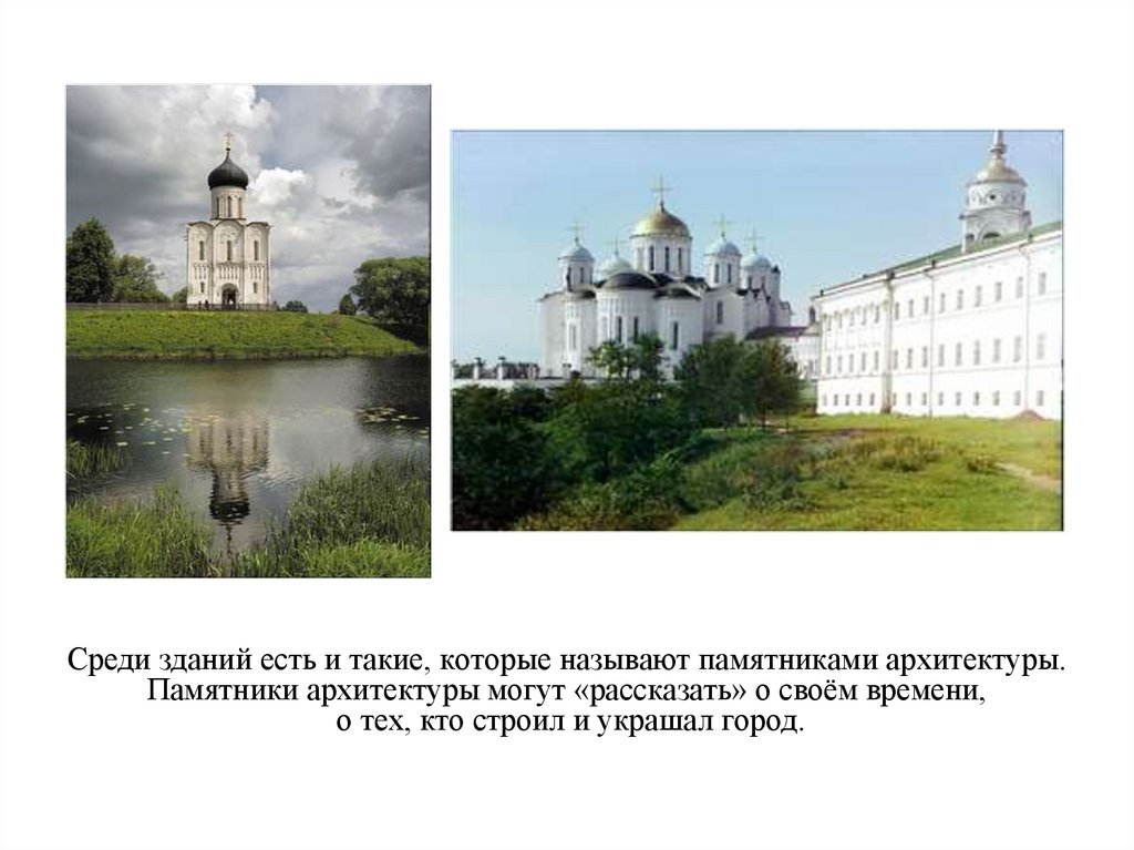 Среди зданий есть и такие, которые называют памятниками архитектуры.Памятники архитектуры могут «рассказать» о своём времени,
