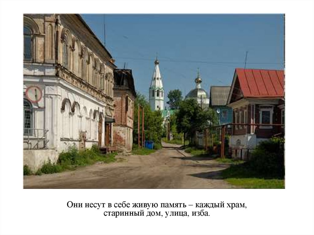 Они несут в себе живую память – каждый храм,старинный дом, улица, изба.