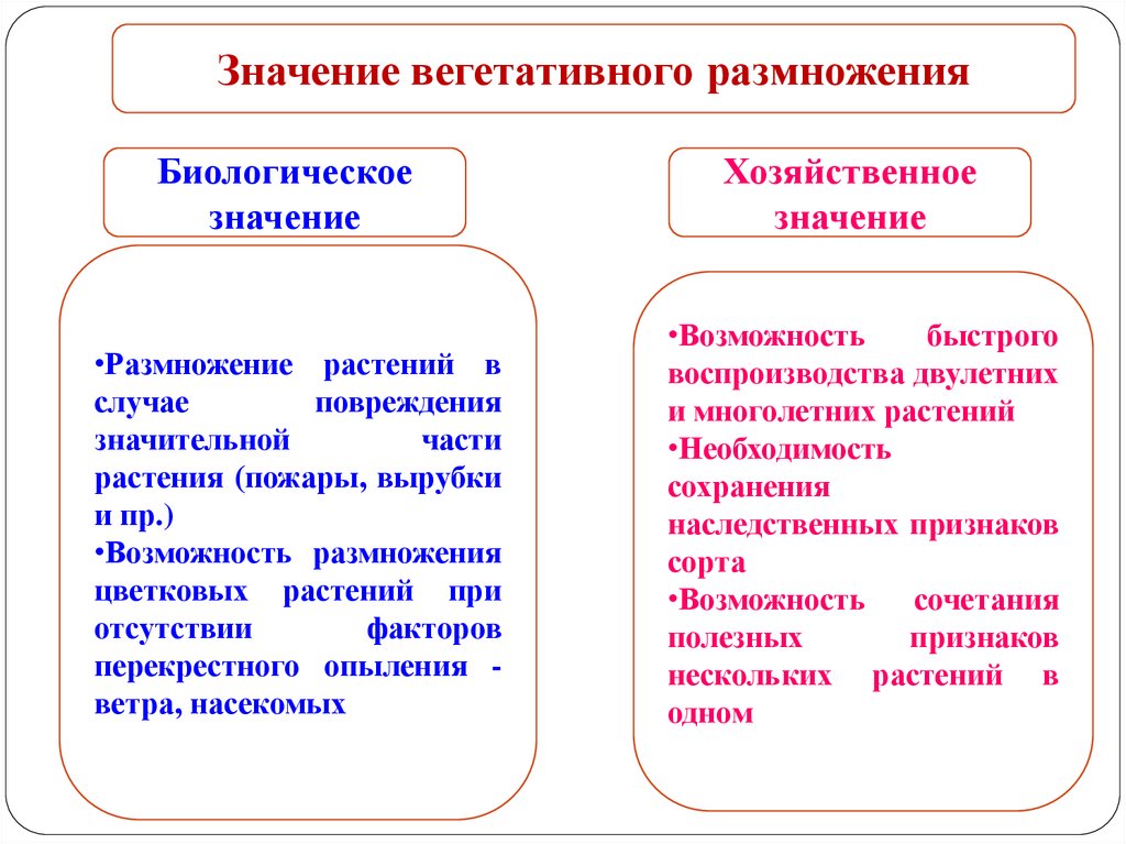 Значение вегетативного размноженияБиологическое