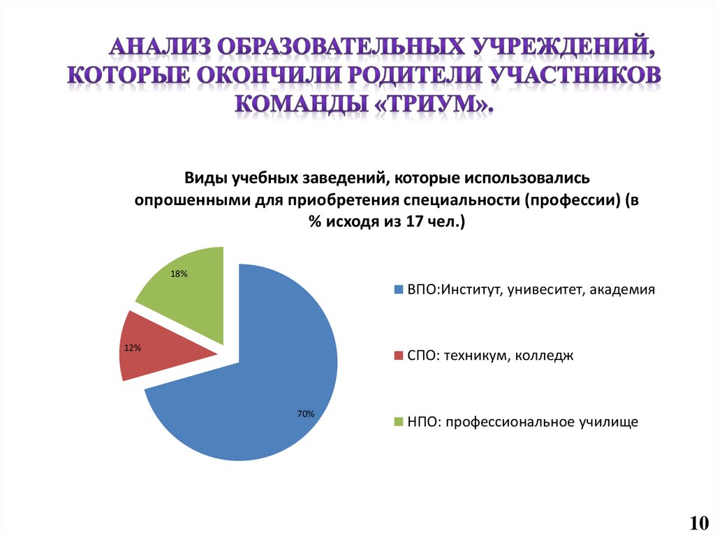 Родители участников команды «Триум» получали специальность вразличных образовательных учреждениях