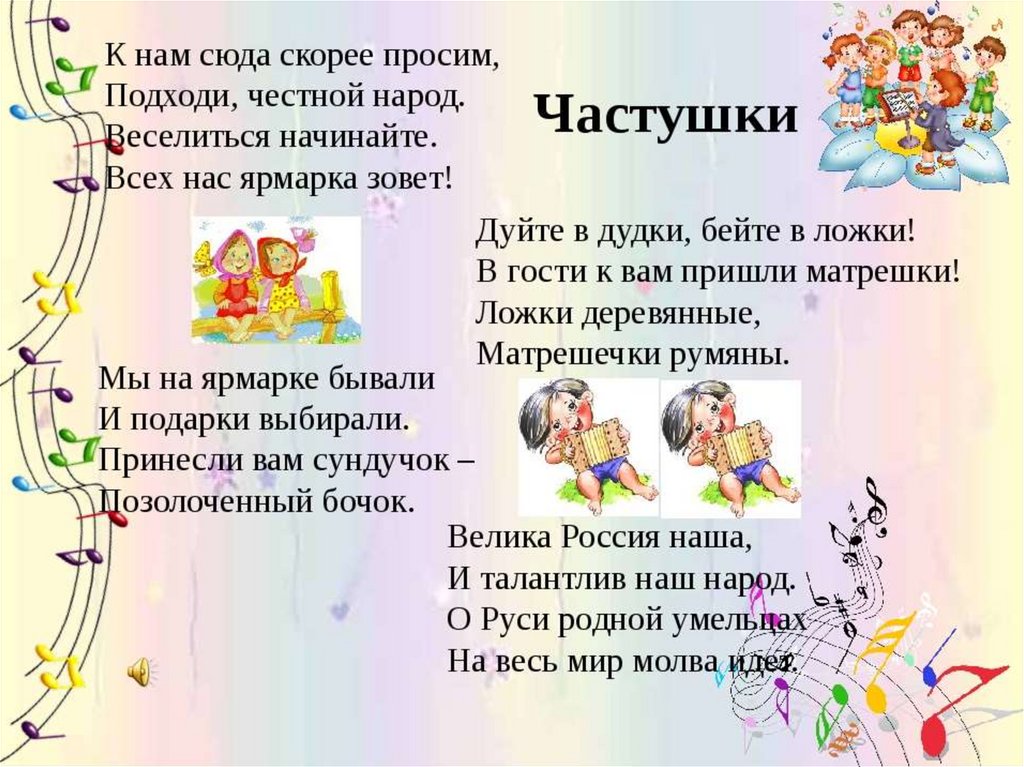 потешками, задорные частушки,