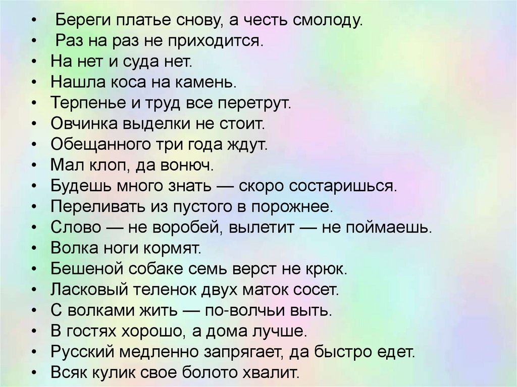 поговорки. Многие из них мудрости поучат,