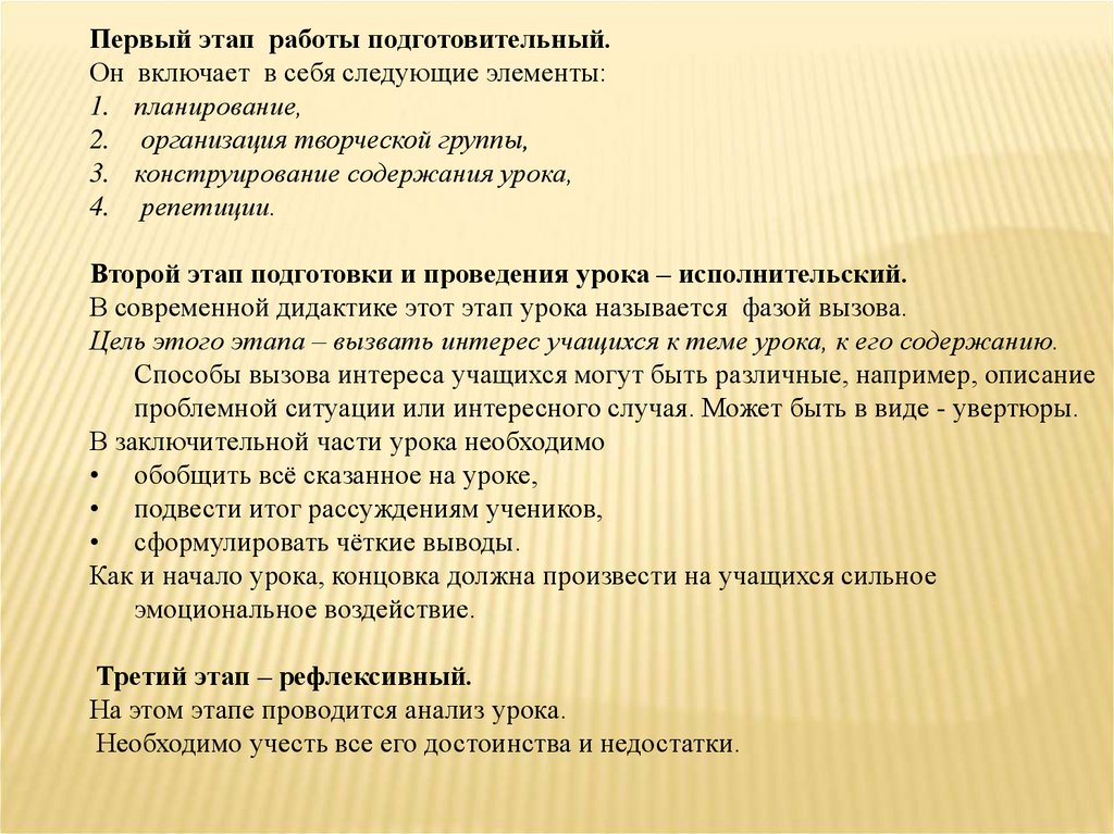 Второй этап подготовки и проведения урока – исполнительский.