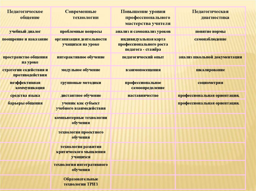 СРАВНИТЕЛЬНАЯ ТАБЛИЦА МЕТОДИКИ И ТЕХНОЛОГИИОБУЧЕНИЯ.