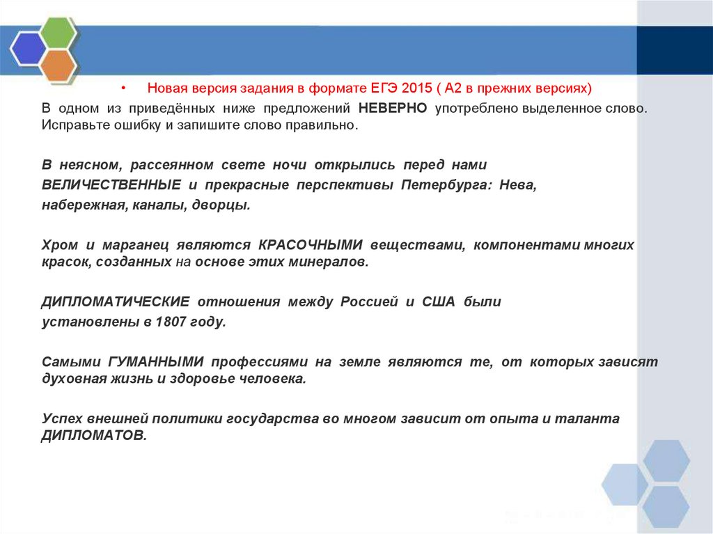 Новая версия задания в формате ЕГЭ 2015 ( А2 в прежних версиях)