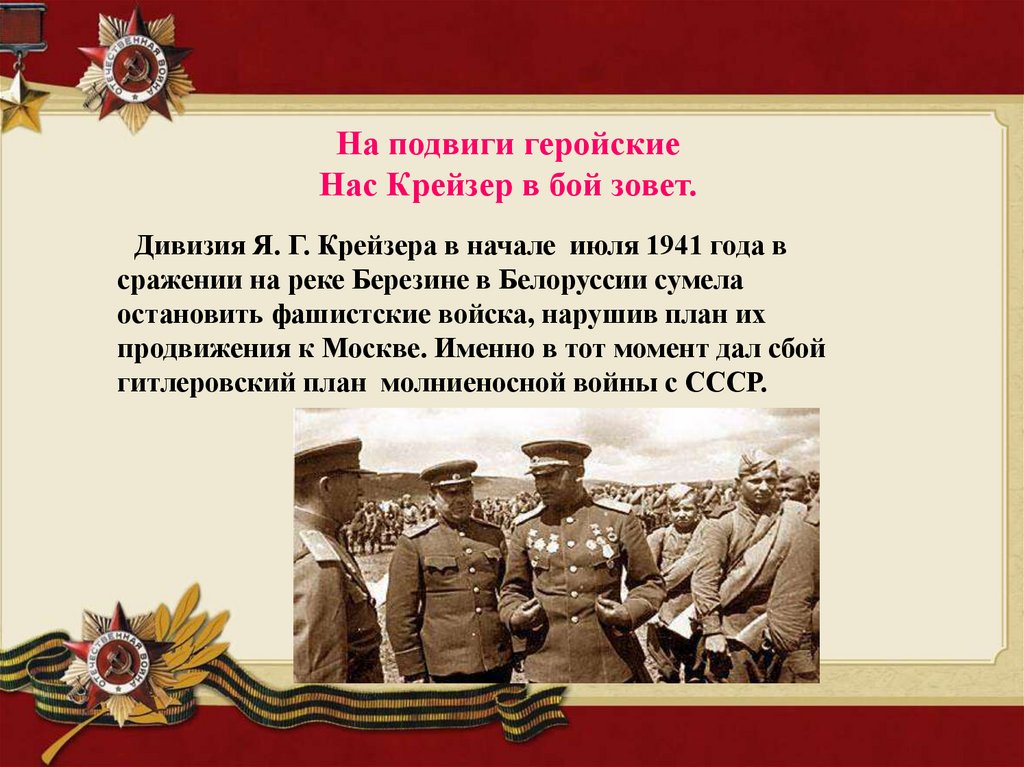 Яков Григорьевич Крейзер:имя в истории Победы