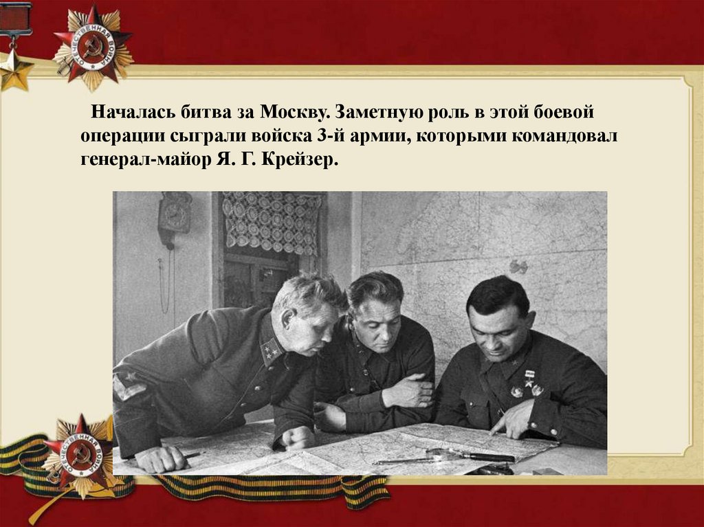Началась битва за Москву. Заметную роль в этой боевойоперации сыграли войска 3-й армии, которыми командовал