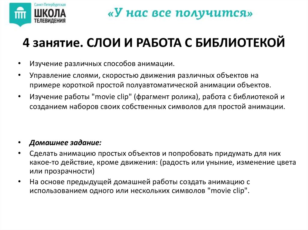 4 занятие. СЛОИ И РАБОТА С БИБЛИОТЕКОЙИзучение различных способов анимации.