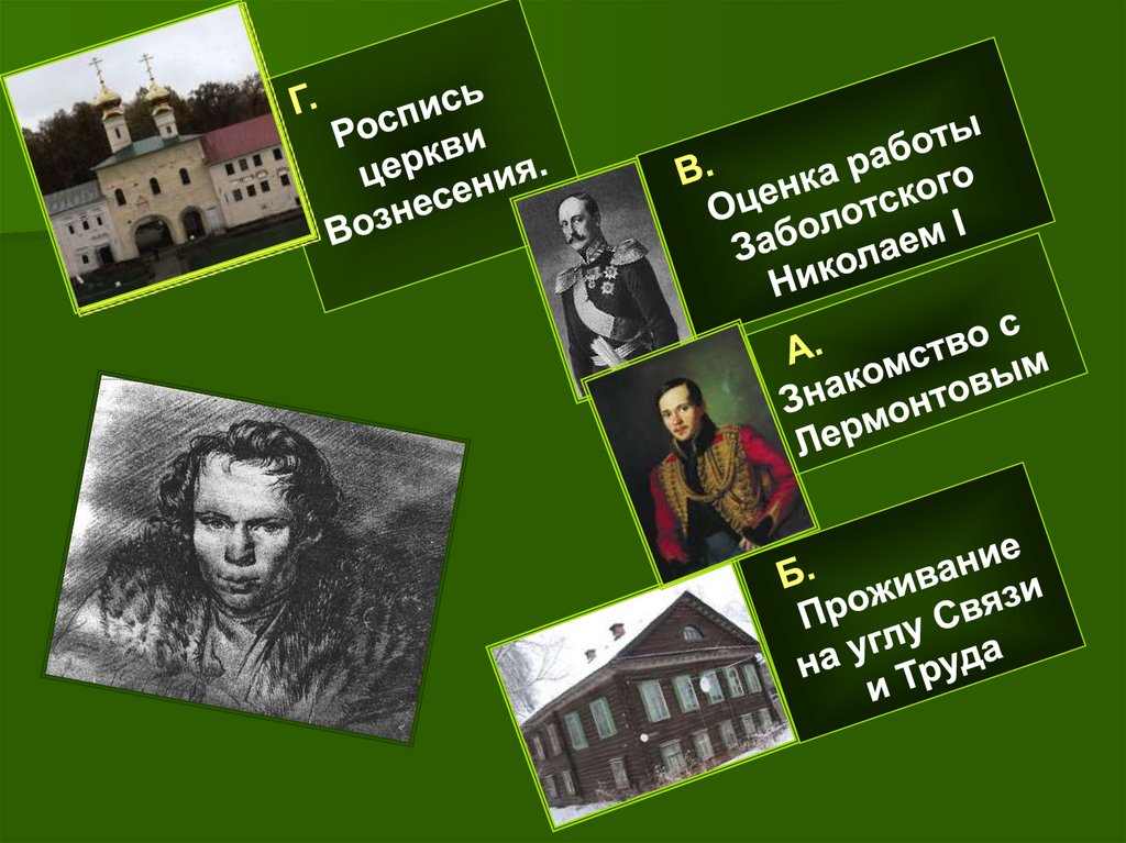 60. Является лишним в ряду рисунок Лермонтова (В) Остальные портреты выполнил П.Е Заболотский