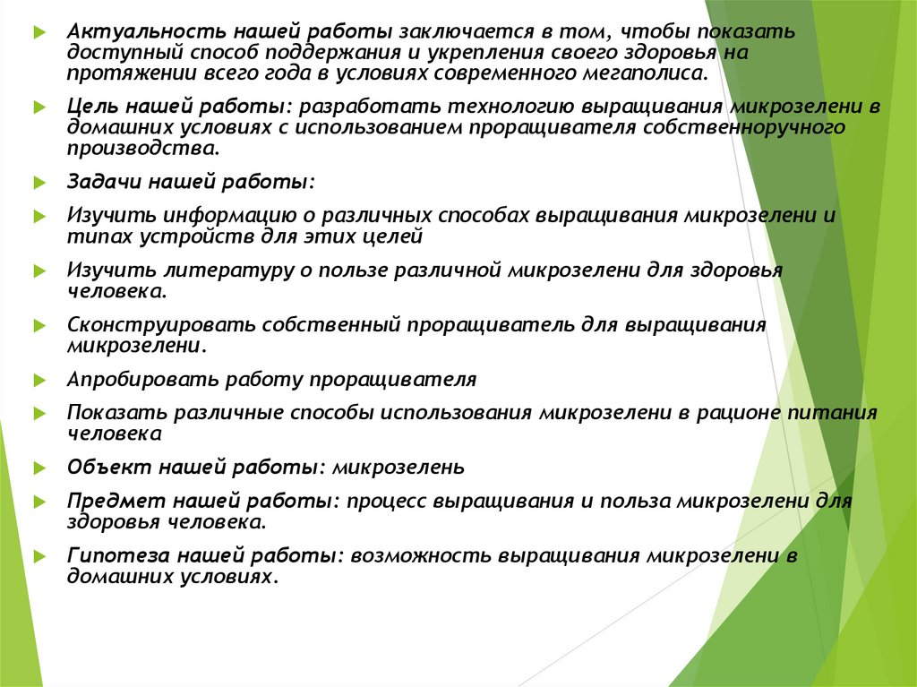 Гипотеза нашей работы: возможность выращивания микрозелени в