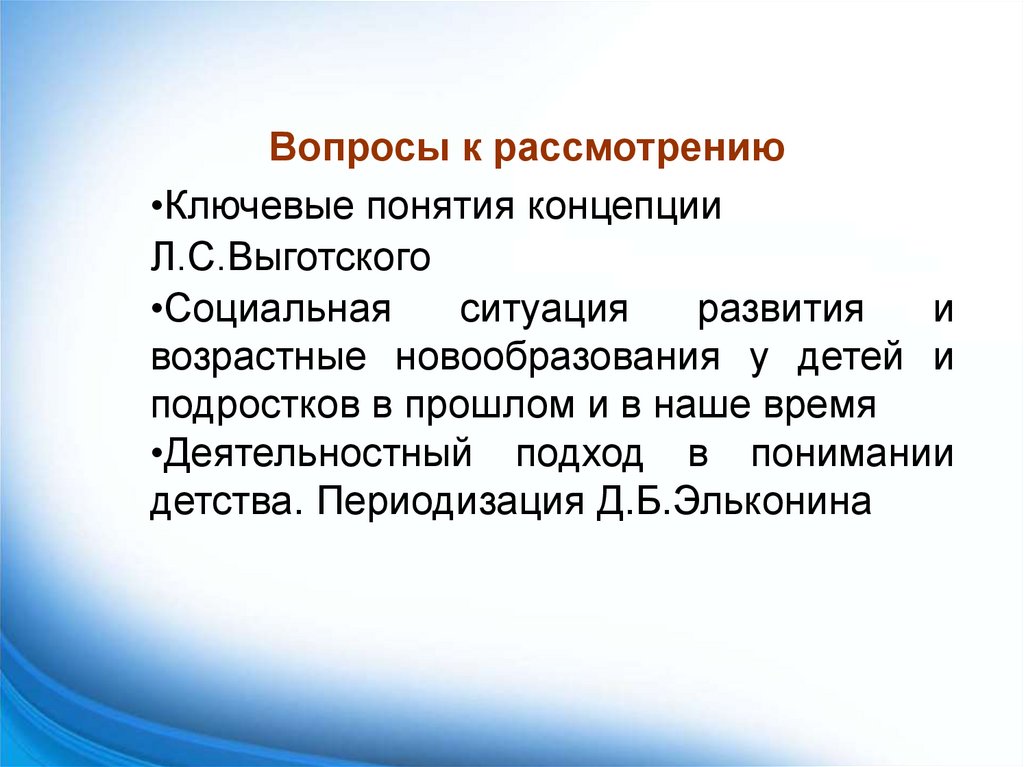 Вопросы к рассмотрению•Ключевые понятия концепции