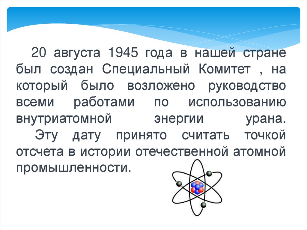 20 августа 1945 года в нашей странебыл создан Специальный Комитет , на