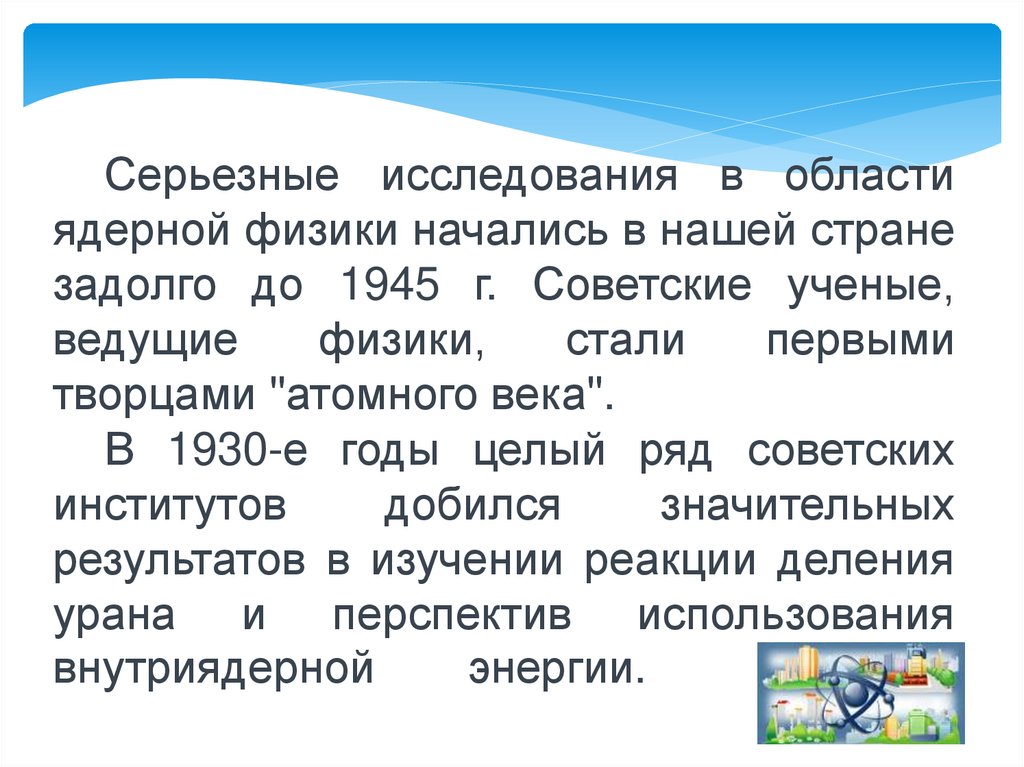 Серьезные исследования в областиядерной физики начались в нашей стране