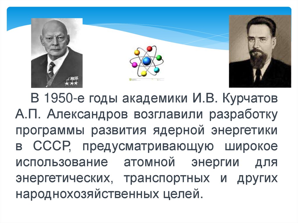 В 1950-е годы академики И.В. КурчатовА.П. Александров возглавили разработку