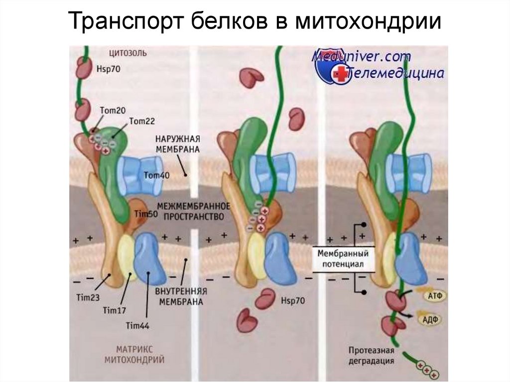 Транспорт белков в митохондрии13.
