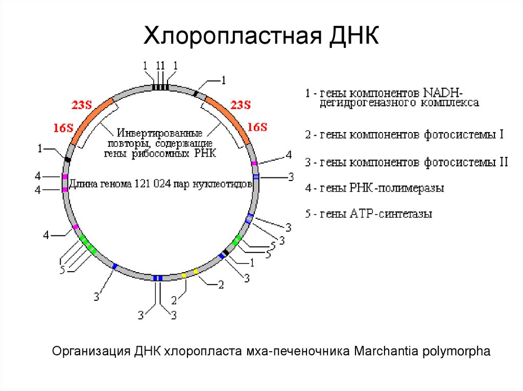 Хлоропластная ДНКОрганизация ДНК хлоропласта мха-печеночника Marchantia polymorpha