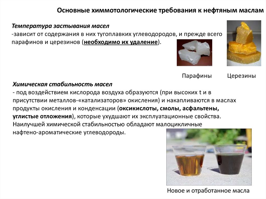 Основные химмотологические требования к нефтяным масламТемпература застывания масел