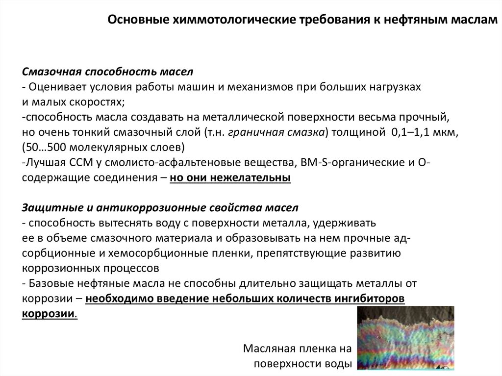 Основные химмотологические требования к нефтяным масламСмазочная способность масел