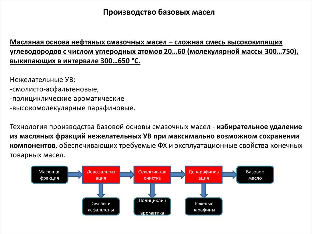 Производство базовых маселМасляная основа нефтяных смазочных масел – сложная смесь высококипящих