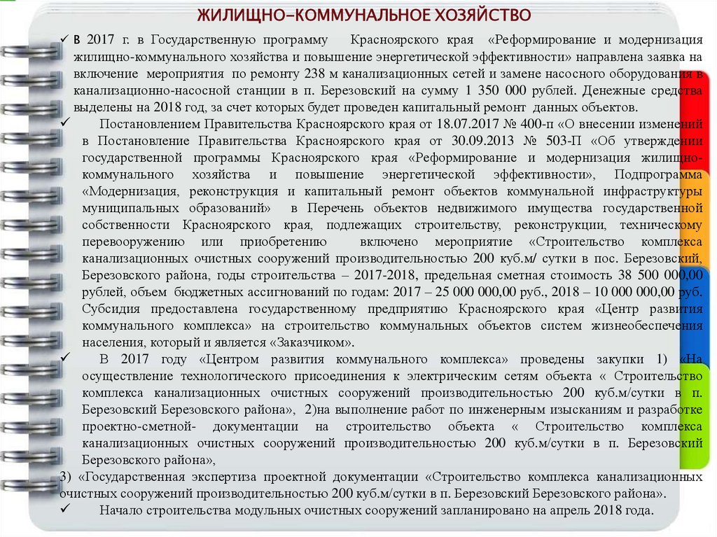 сооружений пос. Березовский, ремонт сетей канализации и замена оборудования на КНС п. Березовский,