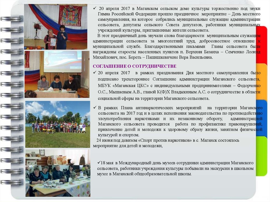 20 апреля 2017 в Маганском сельском доме культуры торжественно под звукиГимна Российской Федерации прошло праздничное мероприятие – День местного
