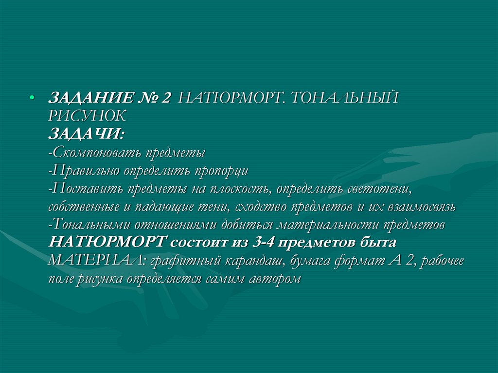 • ЗАДАНИЕ № 2 НАТЮРМОРТ. ТОНАЛЬНЫЙРИСУНОК