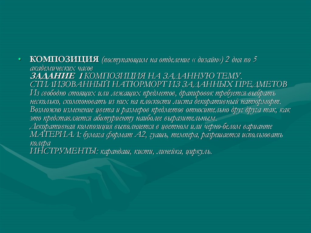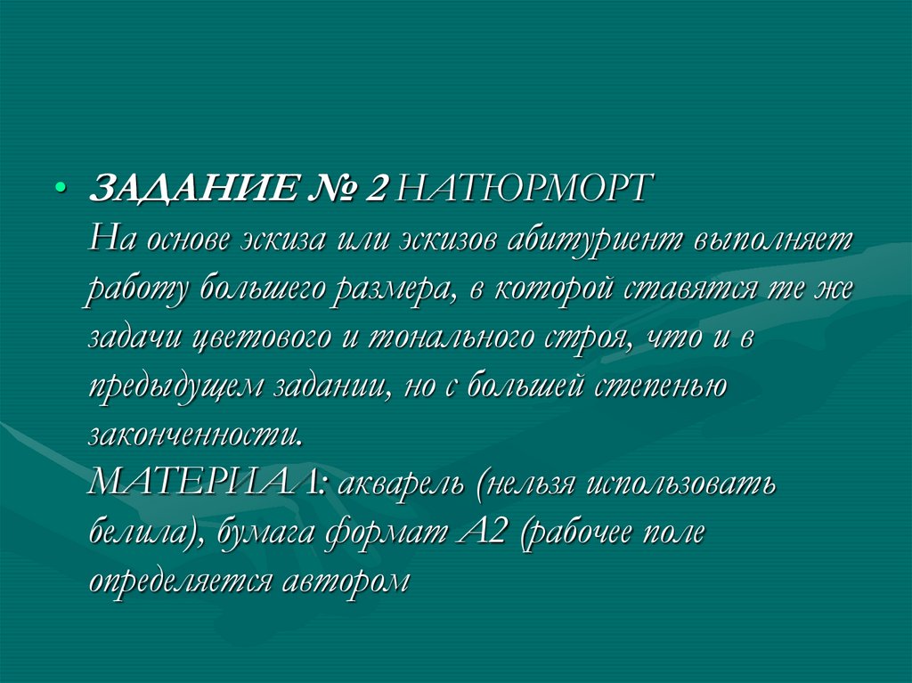 • ЗАДАНИЕ № 2 НАТЮРМОРТНа основе эскиза или эскизов абитуриент выполняет
