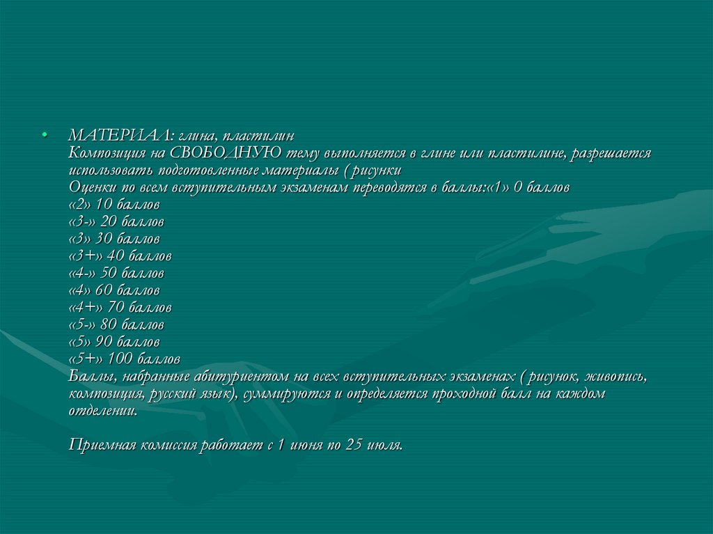 (скульптуре), композиции - (2 экзамена в