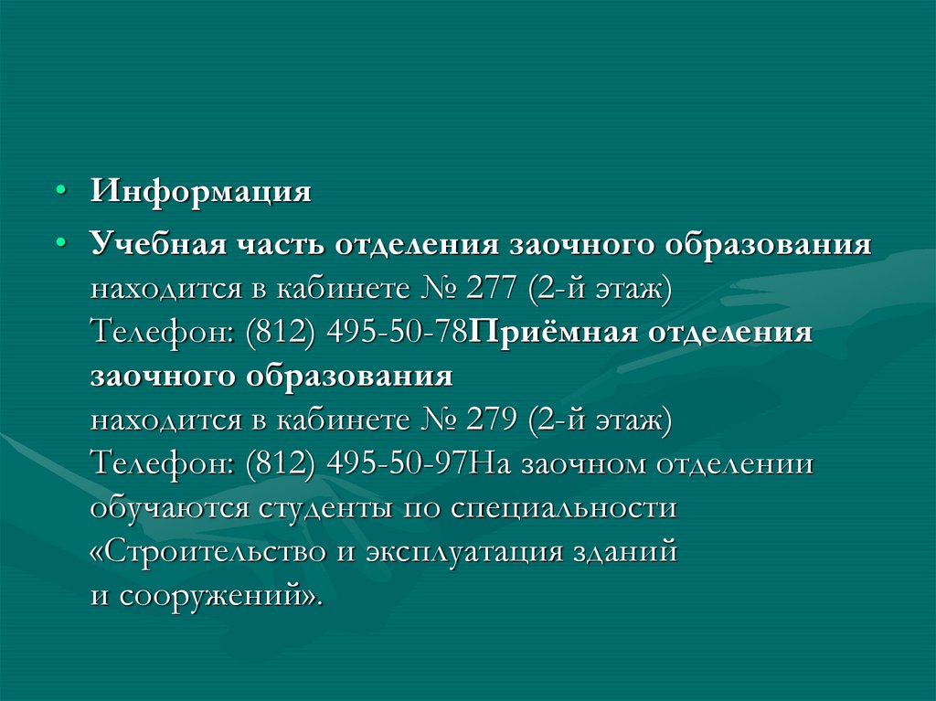 Телефон: (812) 495-50-97На заочном отделении