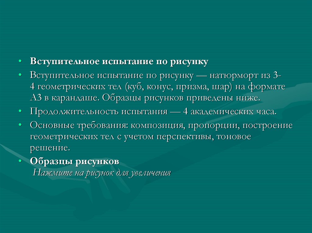 Вступительное испытание по рисунку