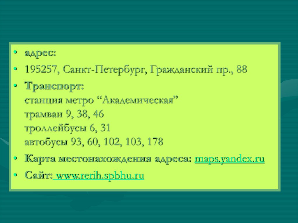 • адрес:• 195257, Санкт-Петербург, Гражданский пр., 88