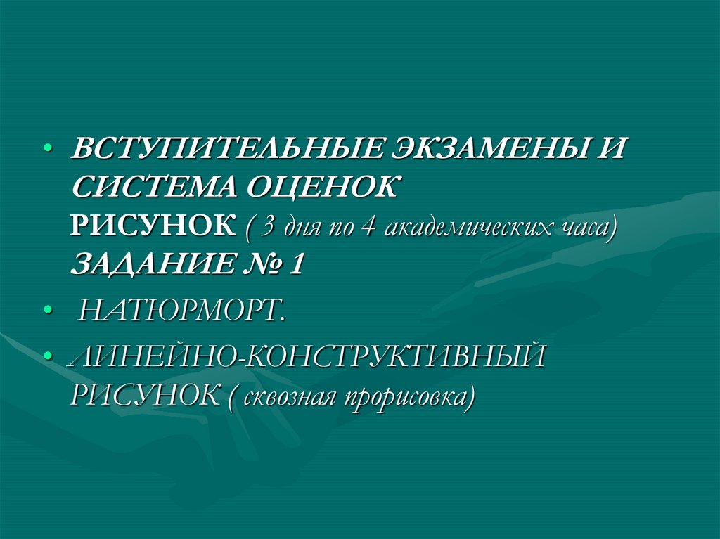 • 1. Каждый поступающий в училище сдаетэкзамены по рисунку, живописи,