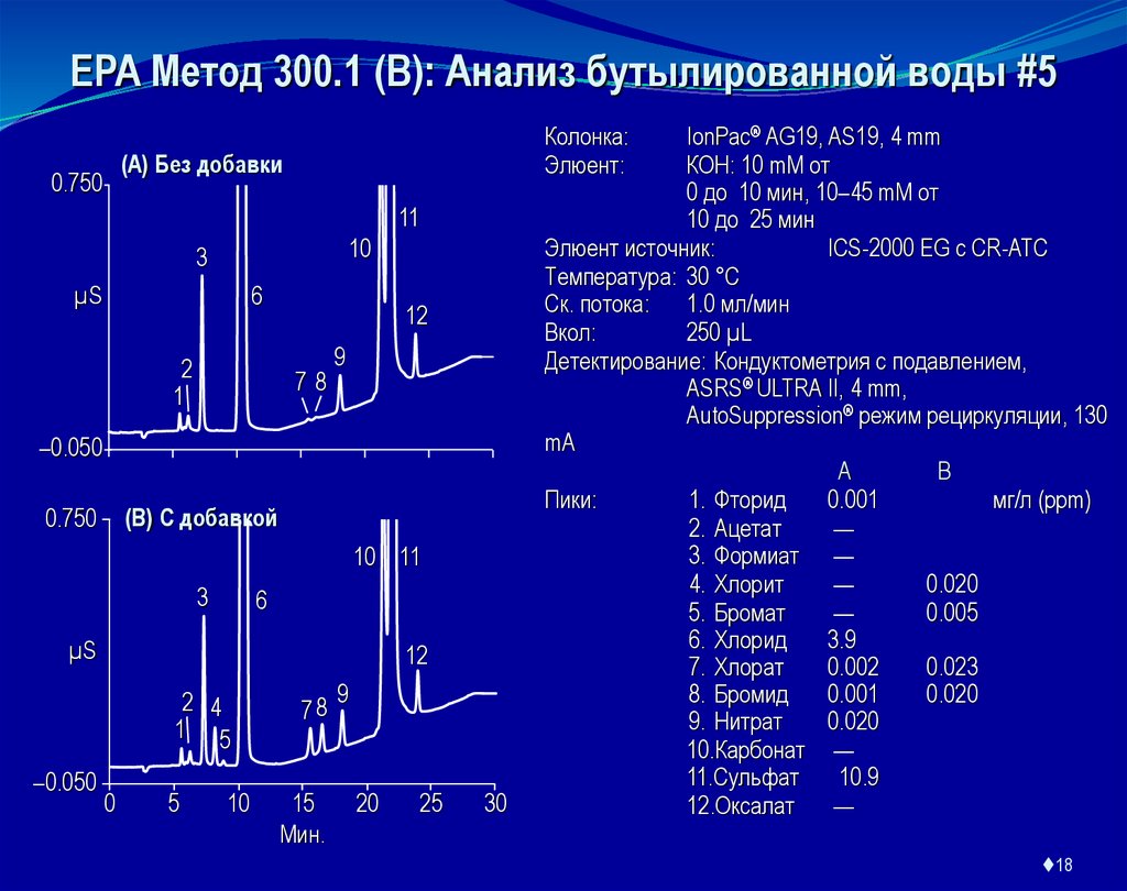 Метод основан на элюентном ионообменном