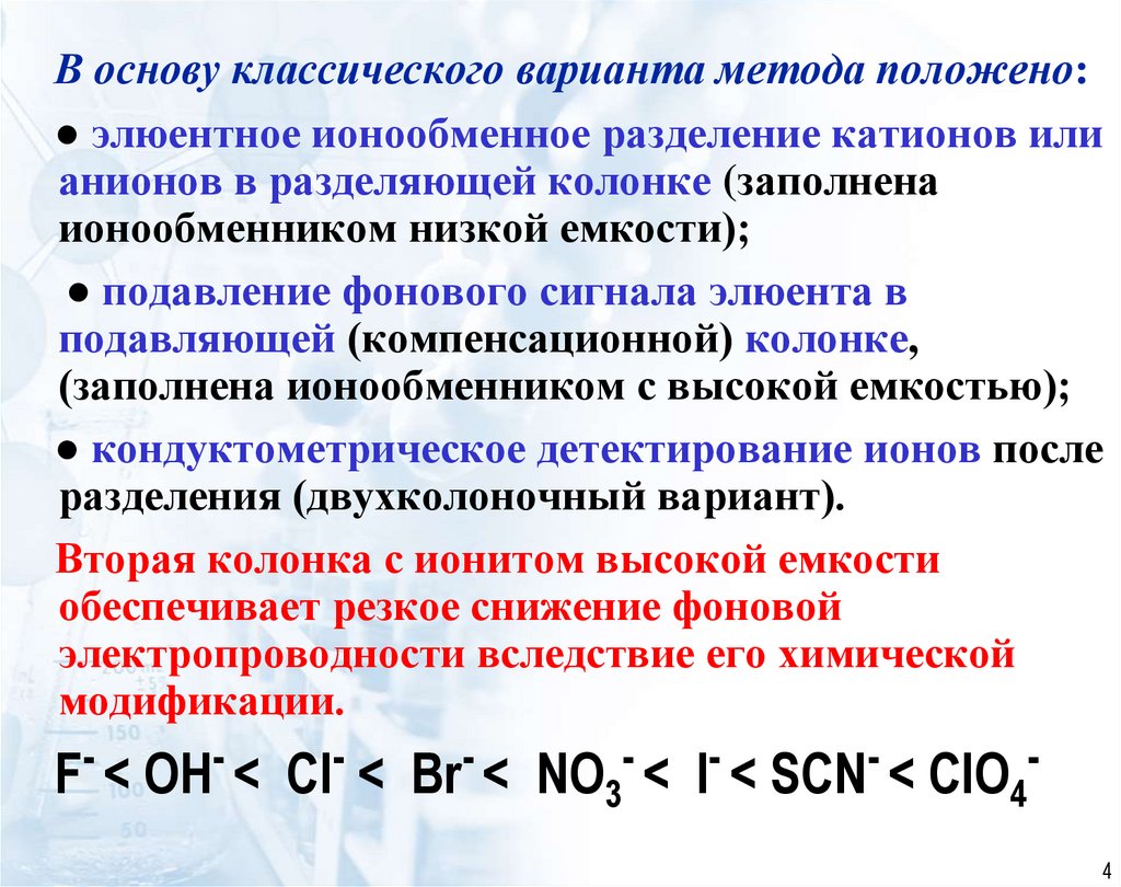 колонке, подавлении фонового сигнала элюента в