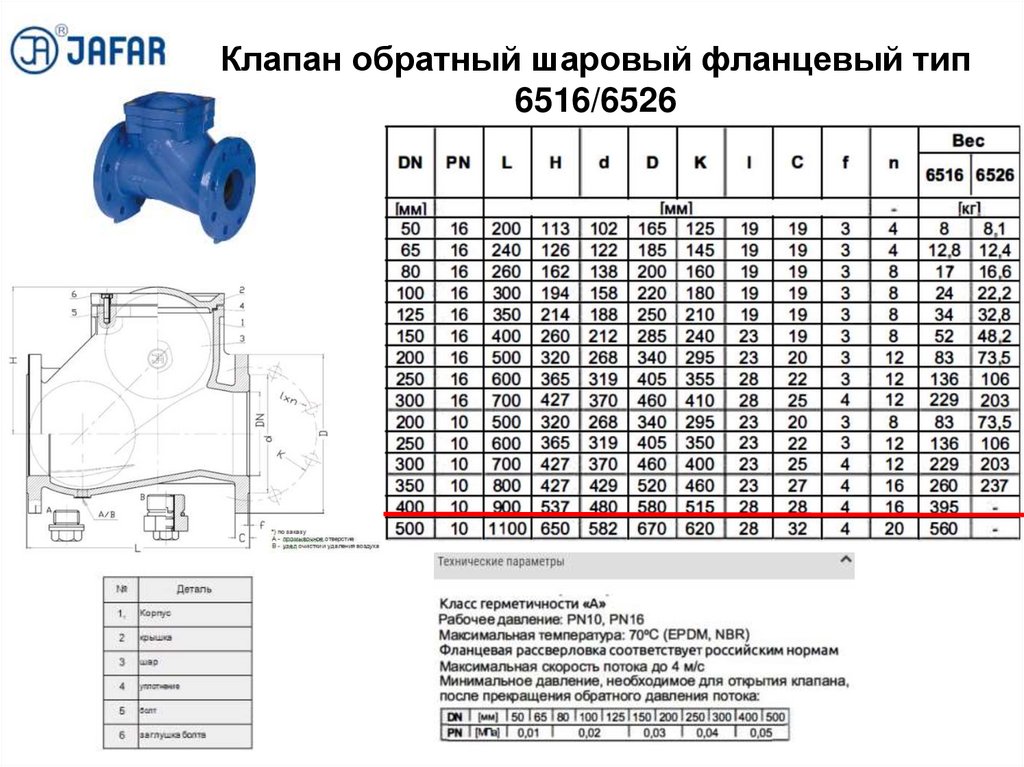 Клапан обратный шаровый фланцевый тип6516/6526
