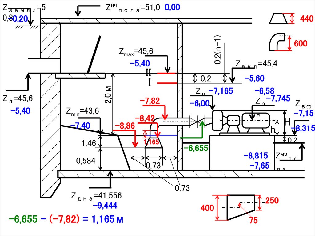 -6,655 – (-7,82) = 1,165м