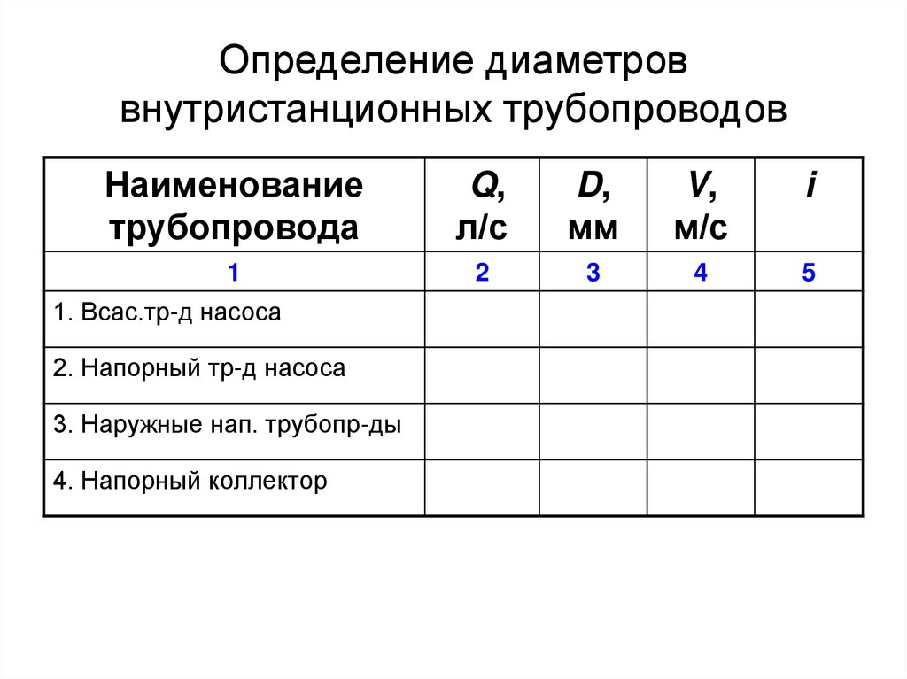 Определение диаметроввнутристанционных трубопроводов