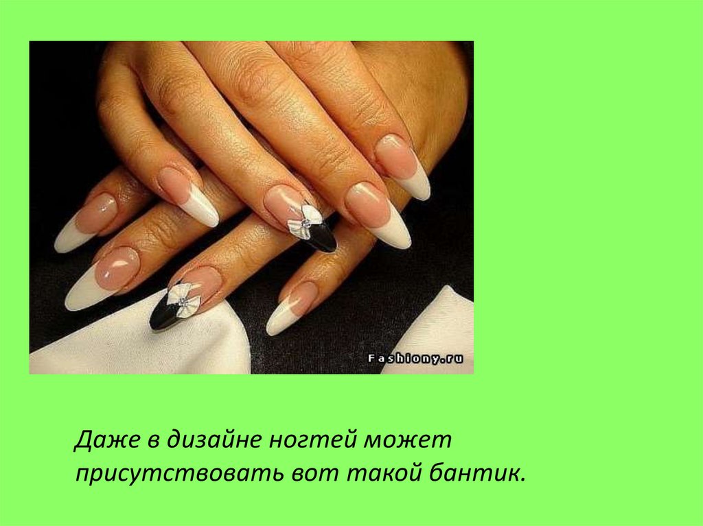 Даже в дизайне ногтей можетприсутствовать вот такой бантик.