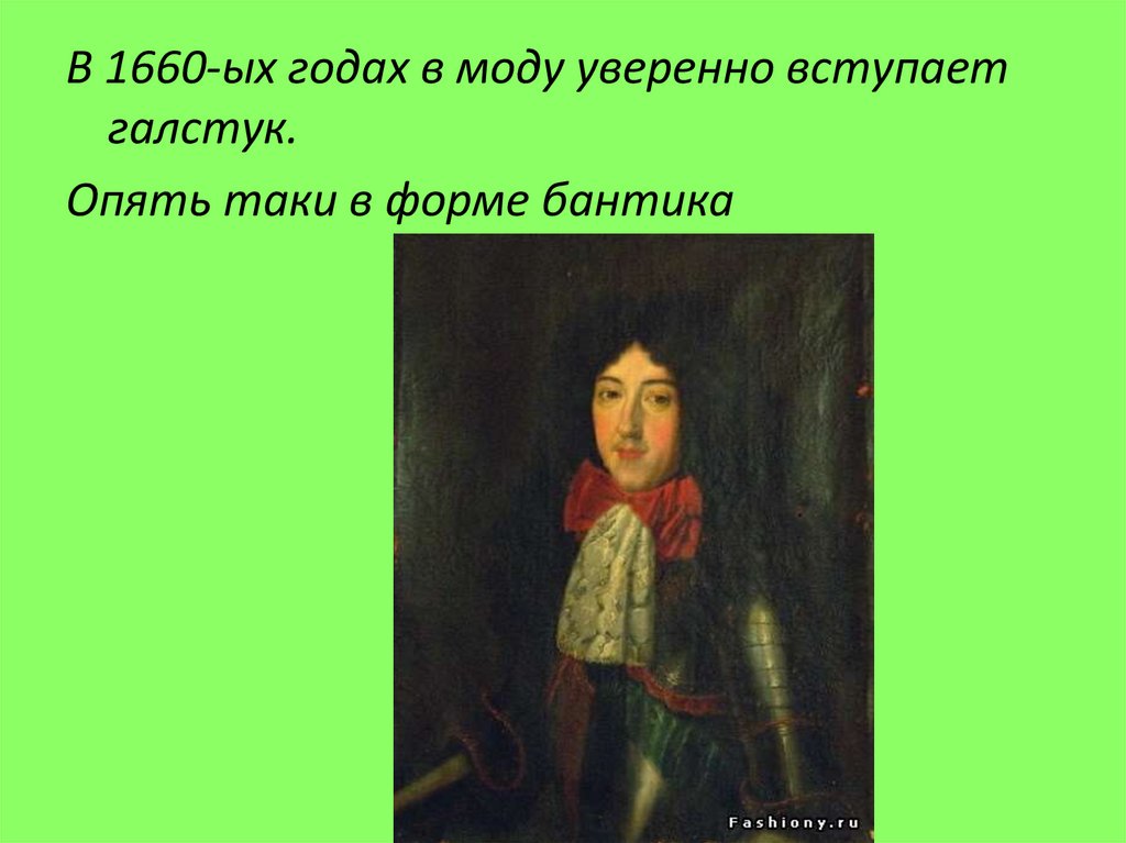 В 1660-ых годах в моду уверенно вступаетгалстук.